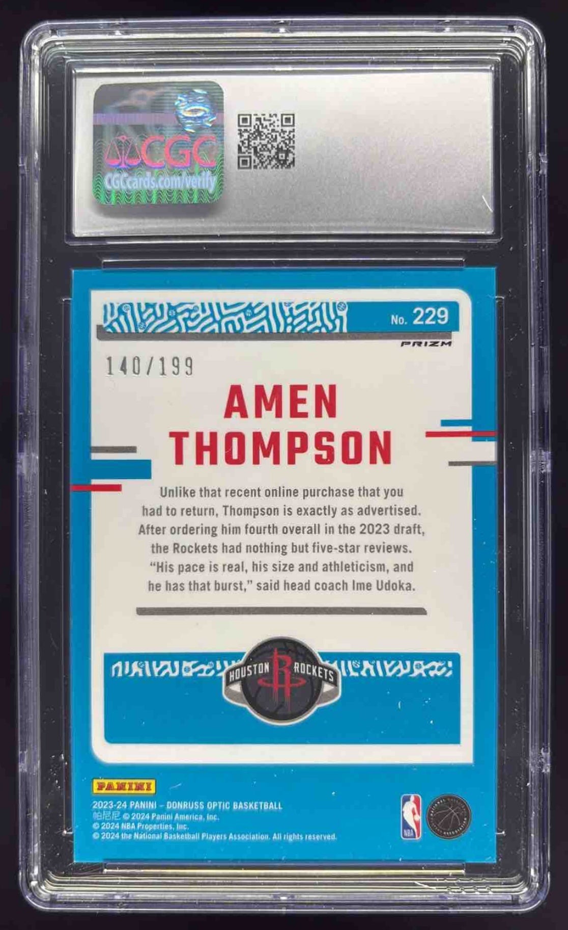 2023 Donruss Optic Orange Prizm #229 Amen Thompson RC Rated Rookie /199 CGC 10