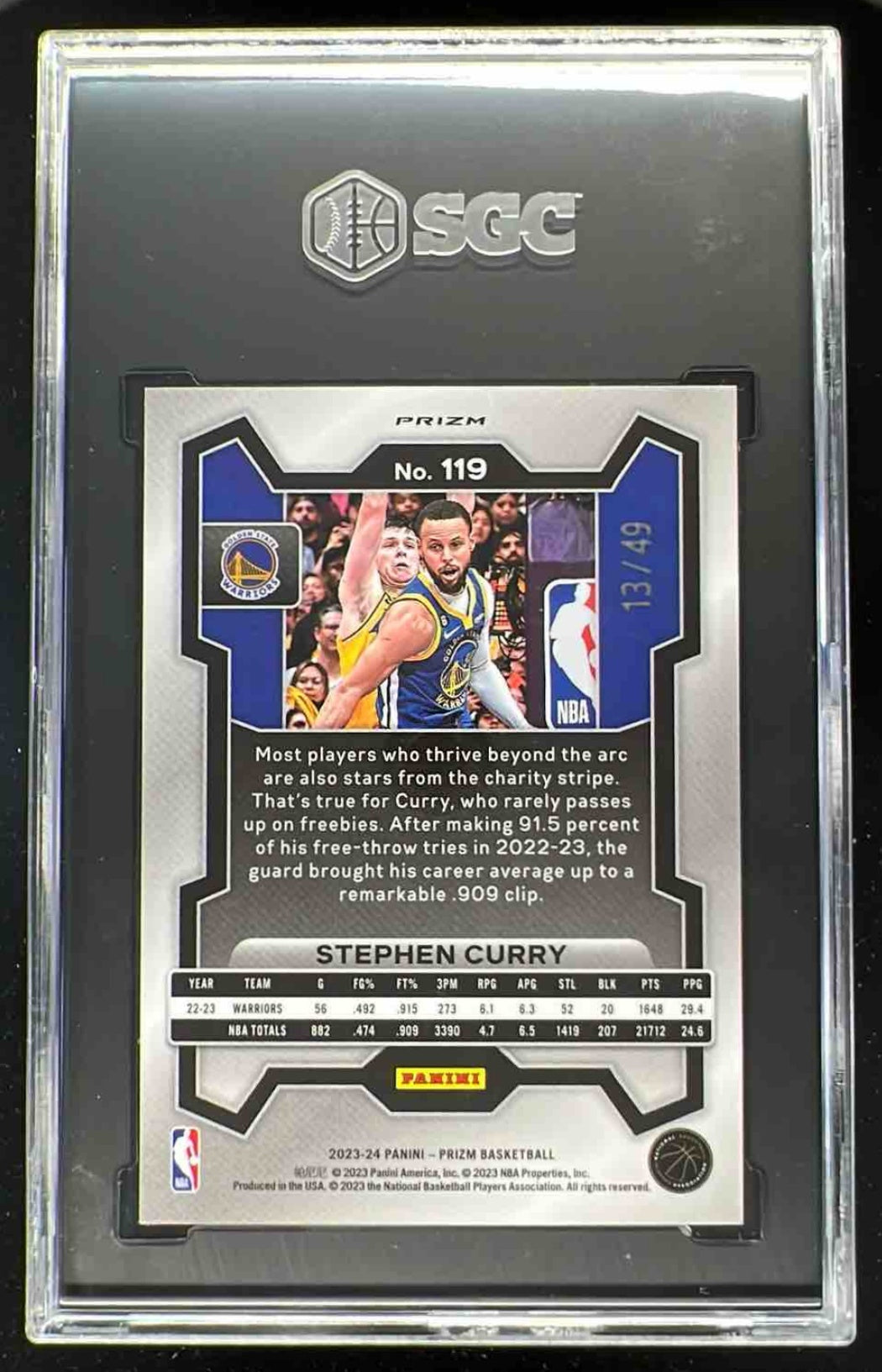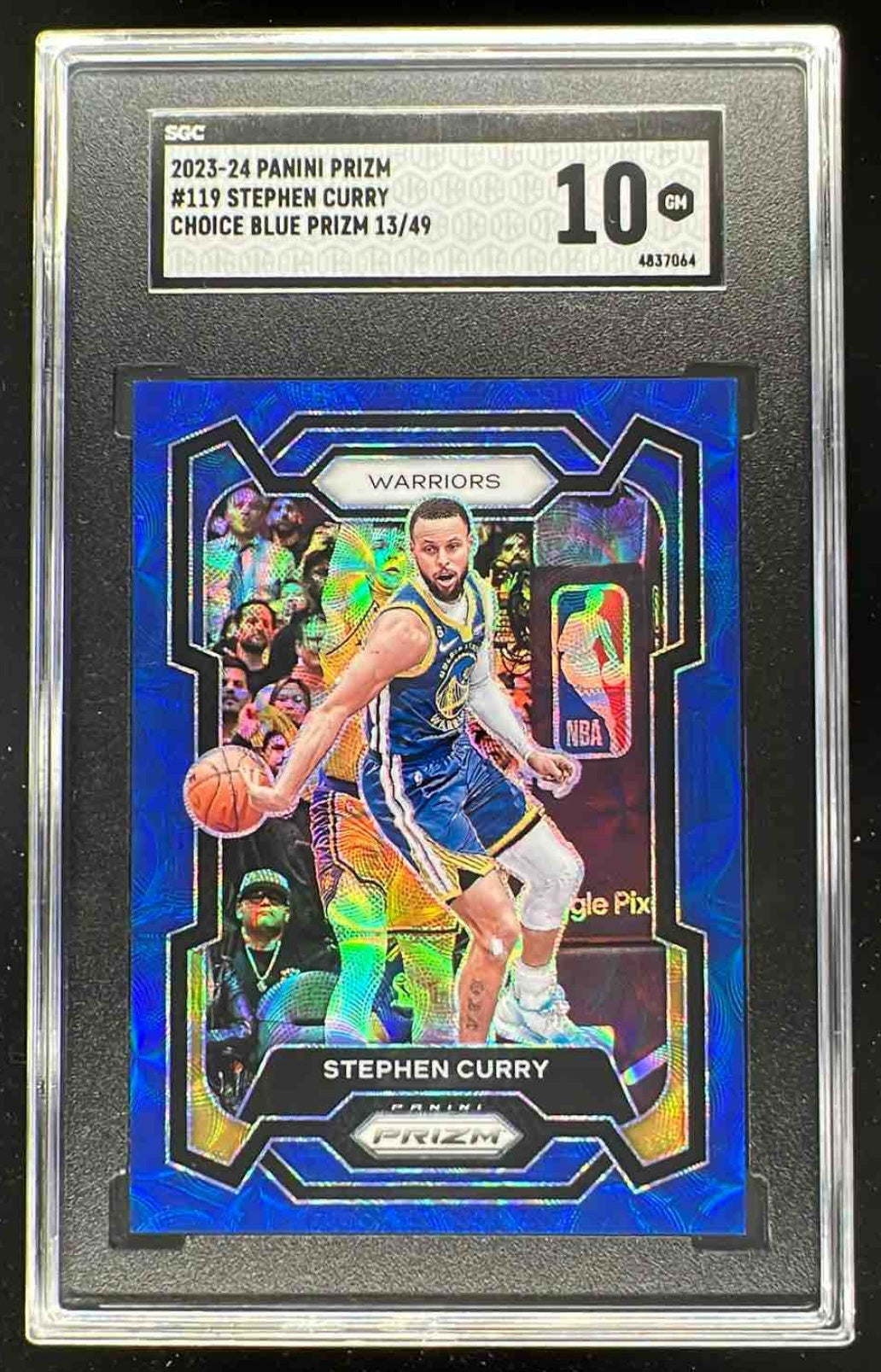 2023-24 Panini Prizm Prizms Choice Blue #119 Stephen Curry /49 SGC 10