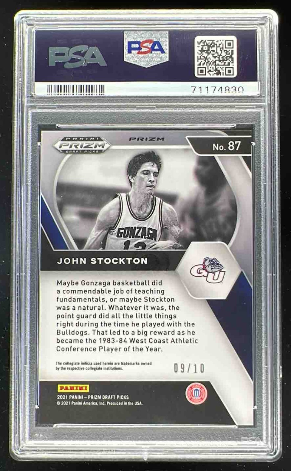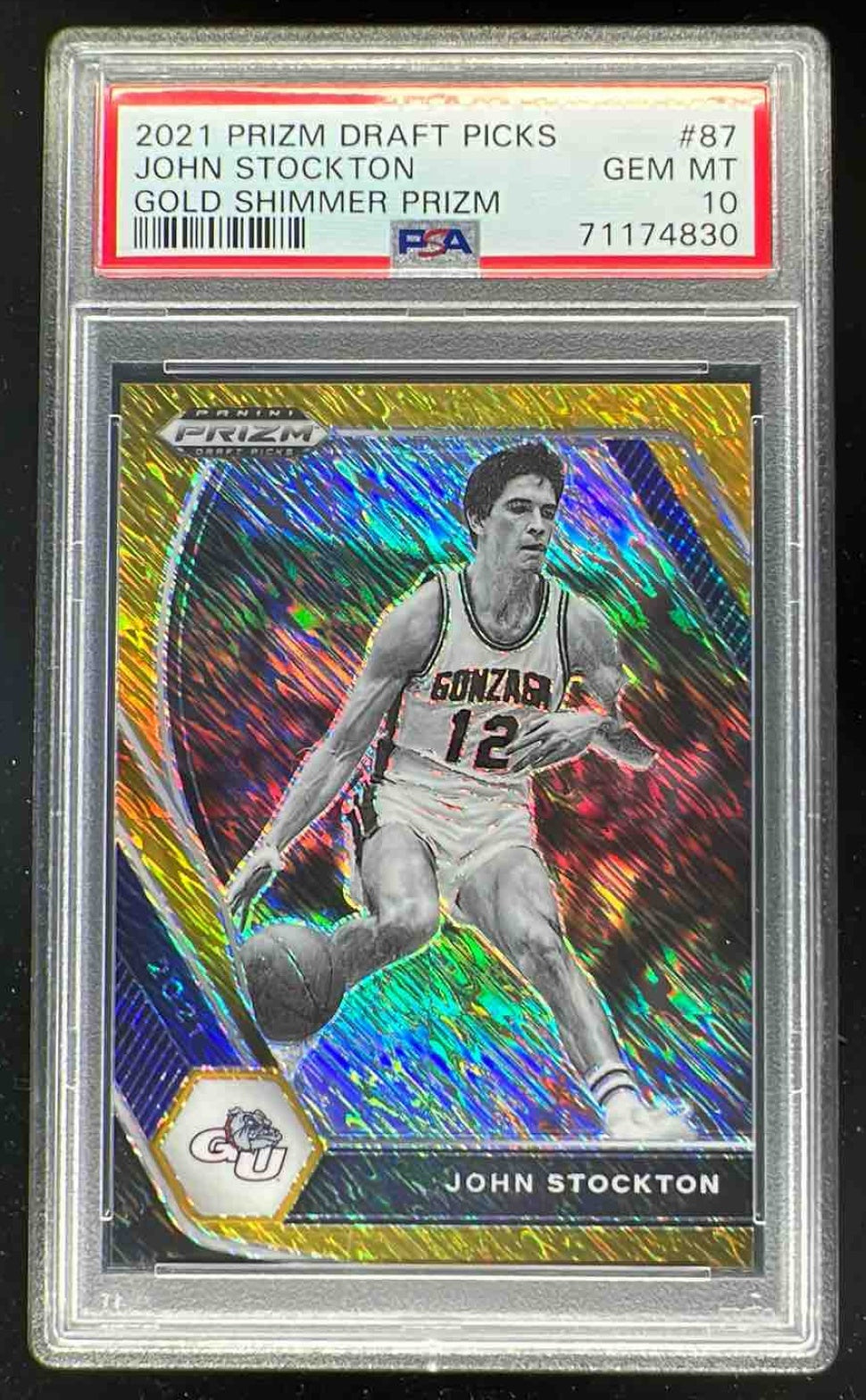 2021-22 Panini Prizm Draft Picks Gold Shimmer Prizm #87 John Stockton /10 PSA 10