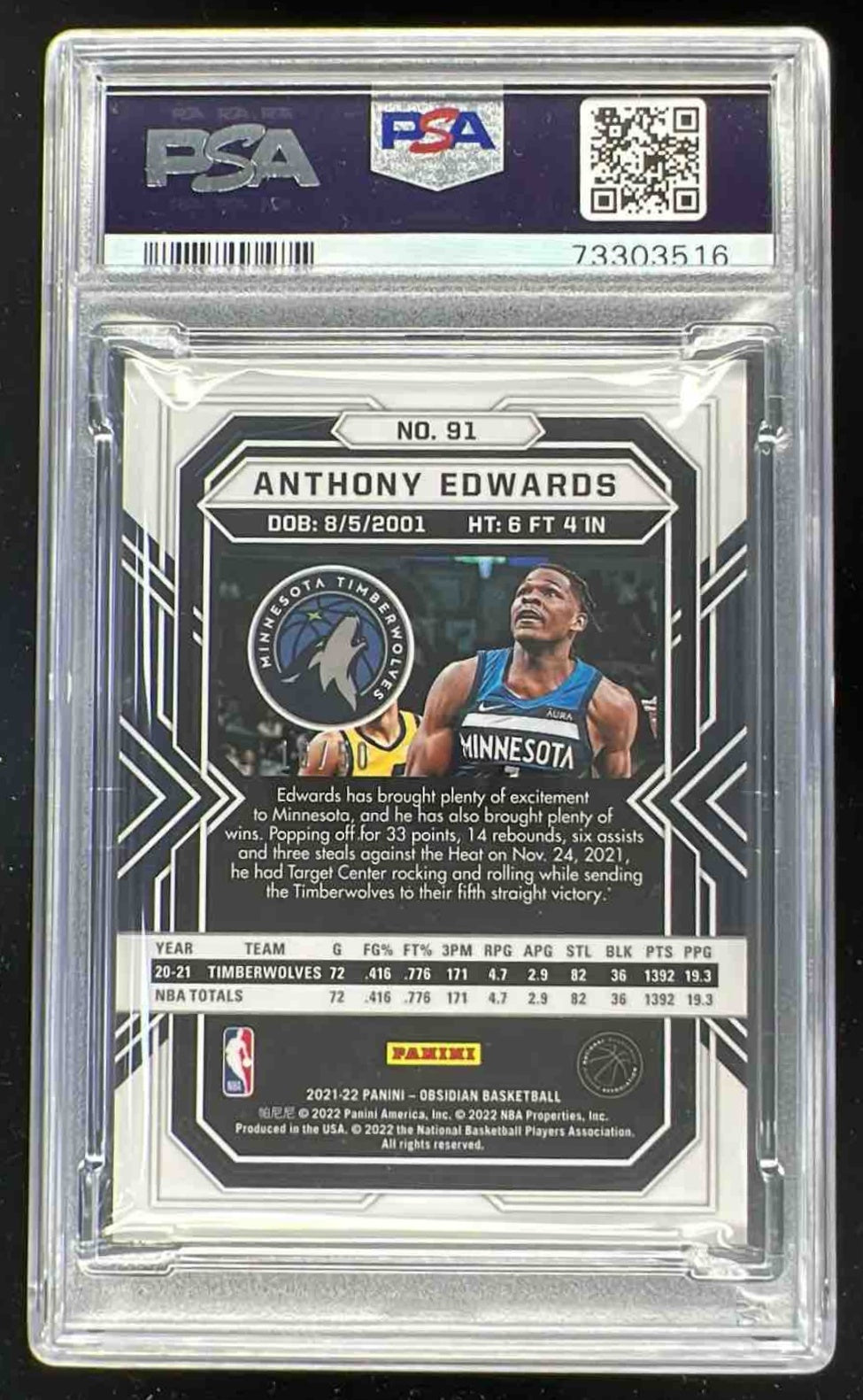 2021-22 Panini Obsidian Electric Etch Orange #91 Anthony Edwards /50 PSA 10