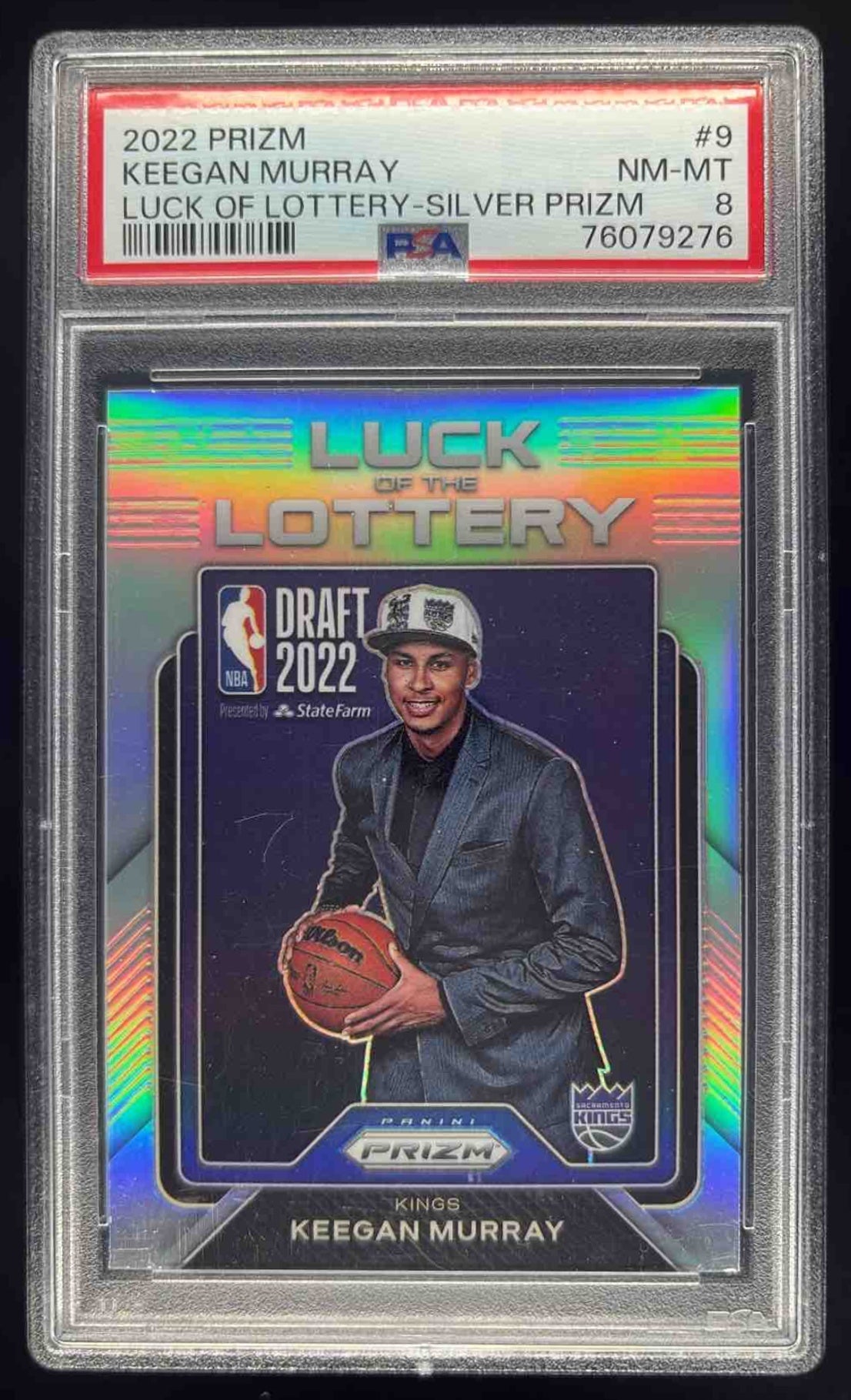 2022-23 Panini Prizm Luck of the Lottery Prizms Silver #9 Keegan Murray RC PSA 8