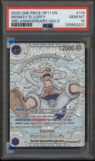 2025 One Piece OP11 EN 3rd Anniversary Gold #119 Monkey D Luffy PSA 10