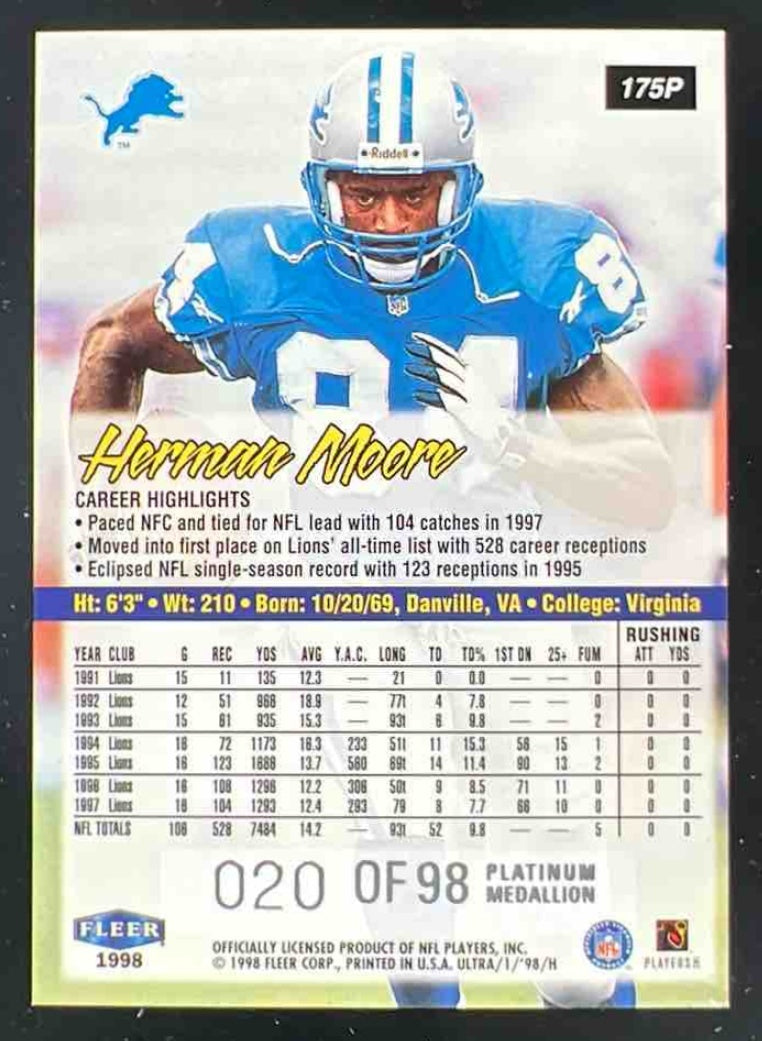 1998 Fleer Ultra Platinum Medallion #175P Herman Moore /98