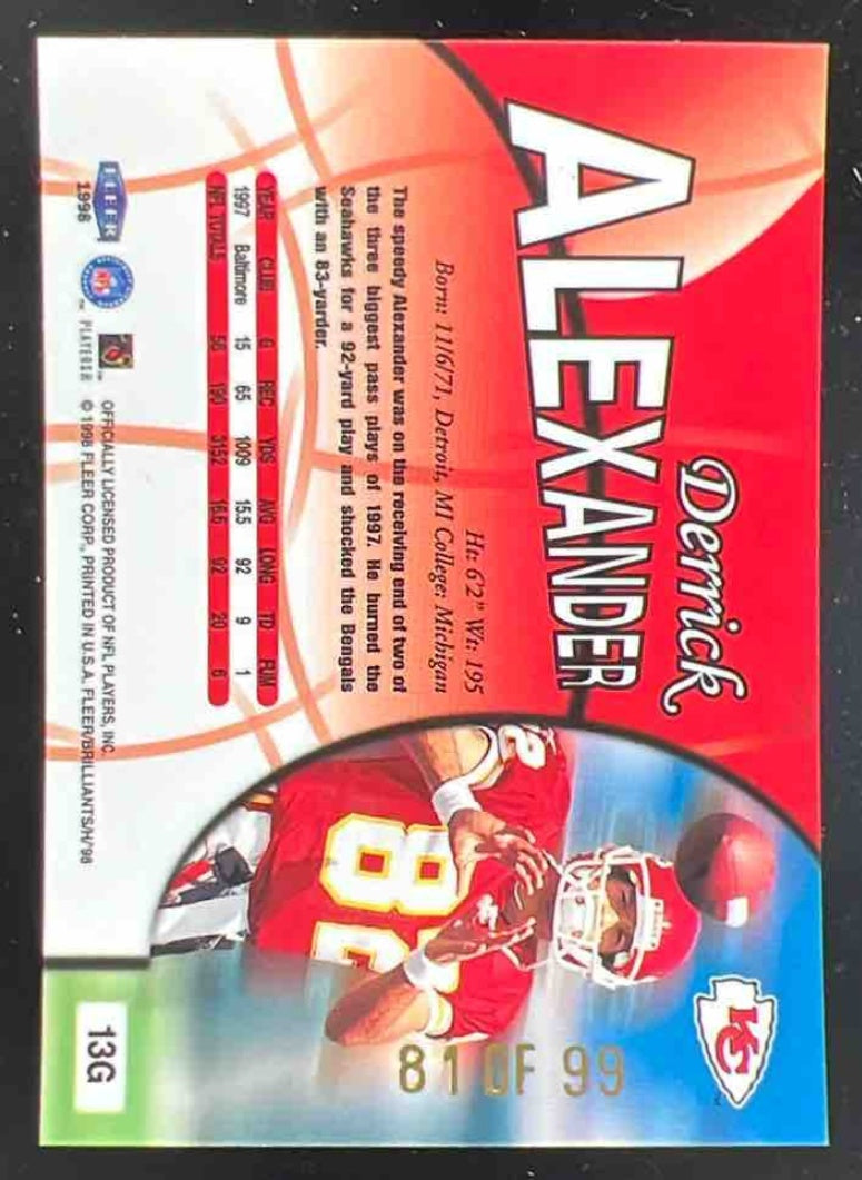 1998 Fleer Brilliants Gold #13G Derrick Alexander /99