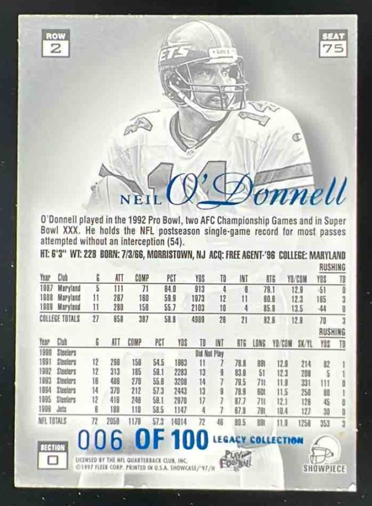1997 Fleer Flair Showcase Legacy Collection Row 2 #75 Neil O'Donnell /100