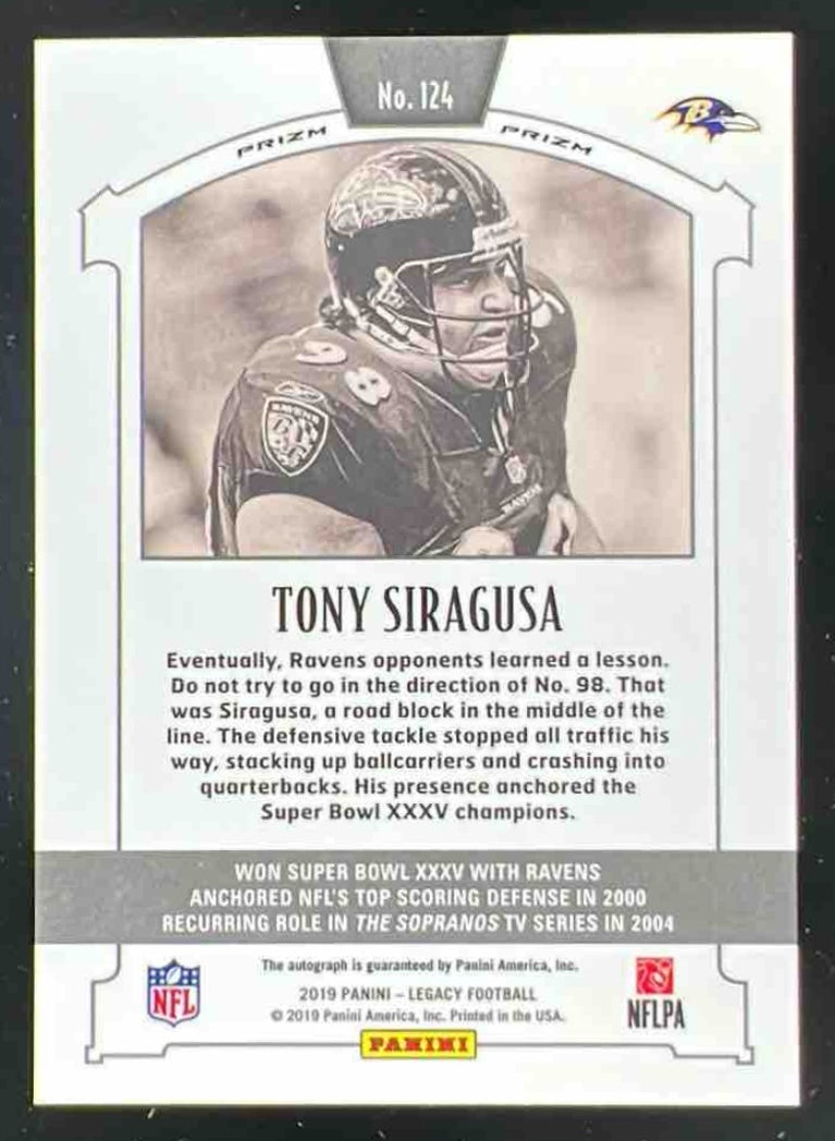 2019 Panini Legacy Premium Penmanship #124 Tony Siragusa Auto