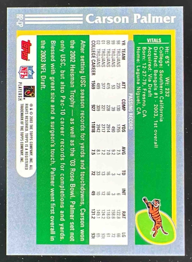 2003 Topps Rookie Premiere Autographs #RP-CP Carson Palmer RC Auto