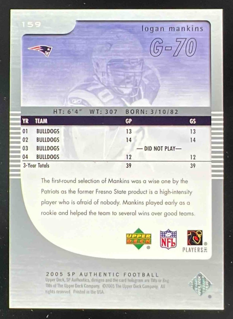2005 SP Authentic #159 Logan Mankins RC Auto /750