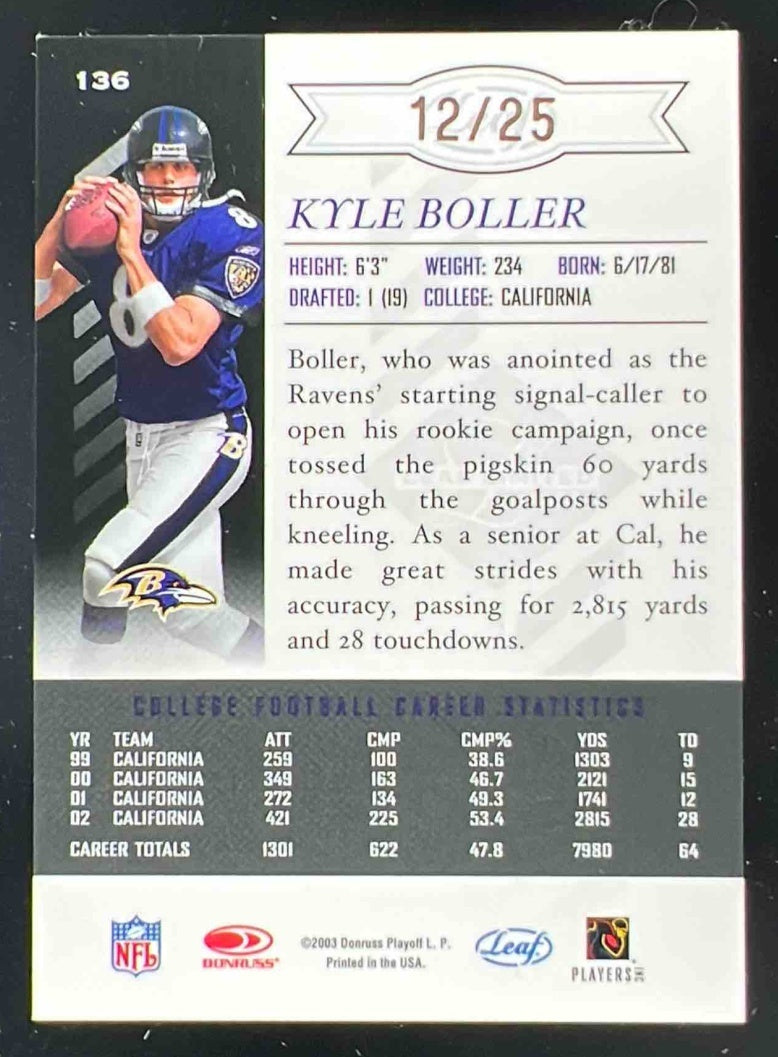 2003 Leaf Limited Bronze Spotlight #136 Kyle Boller RC Auto /25