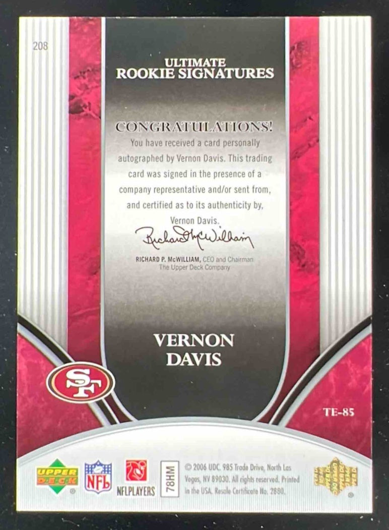 2006 Upper Deck Ultimate Collection #208 Vernon Davis RC Auto /99