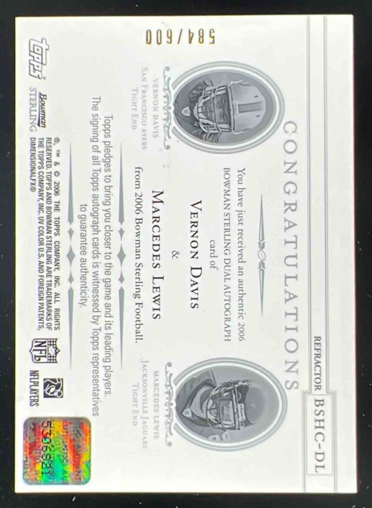 2006 Bowman Sterling Dual Auto #BSHC-DL Vernon Davis Marcedes Lewis /600