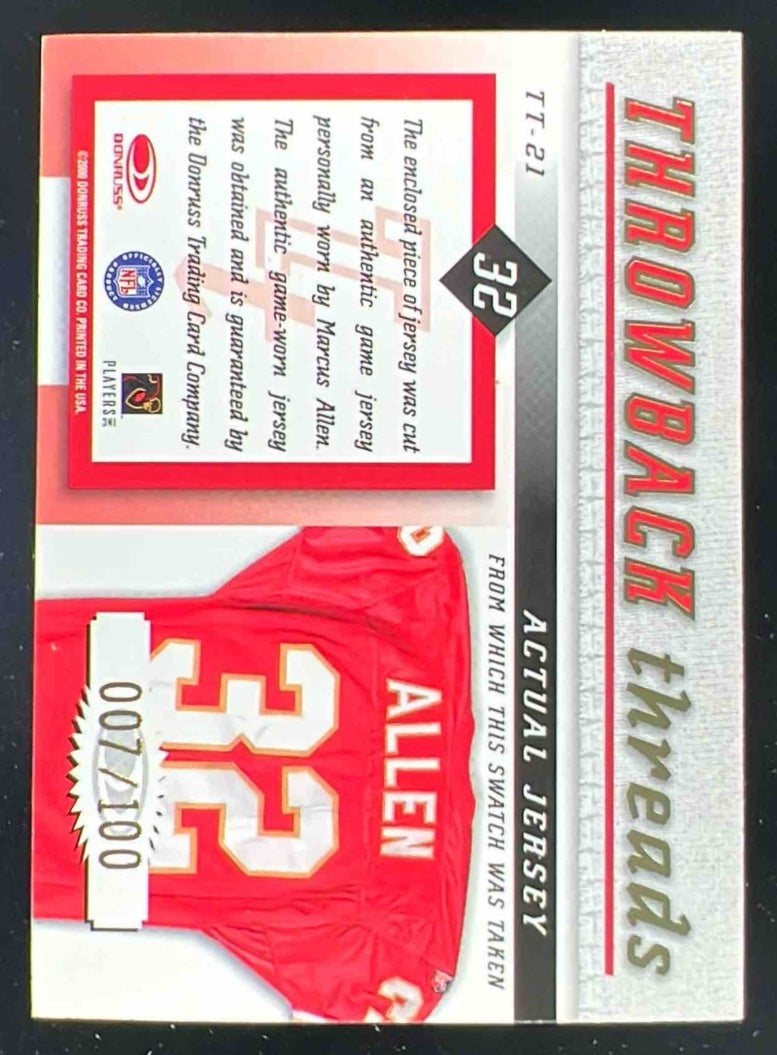 2000 Donruss Elite Throwback Threads #TT-21 Marcus Allen /100