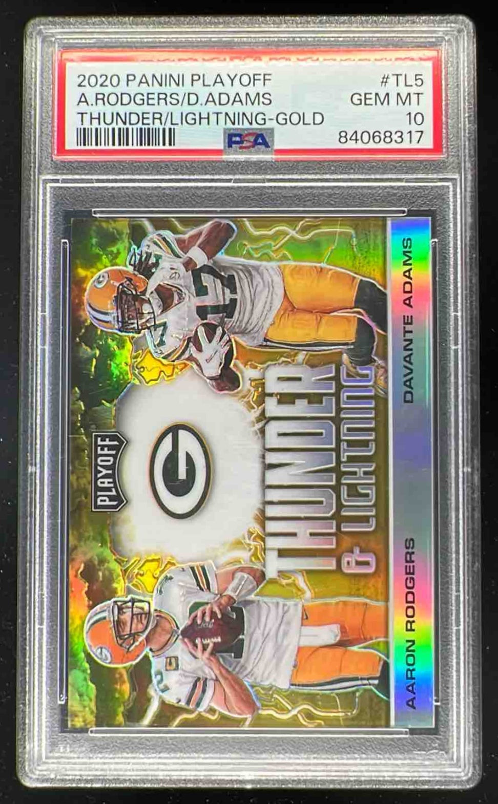 2020 Playoff Thunder & Lightning Gold Aaron Rodgers Davante Adams /10 PSA 10