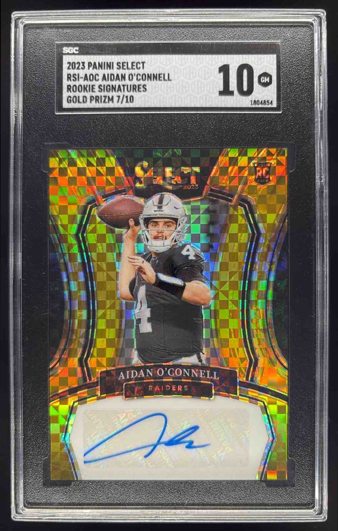 2023 Select Rookie Signatures Gold Prizm Aidan O'Connell RC Auto /10 SGC 10