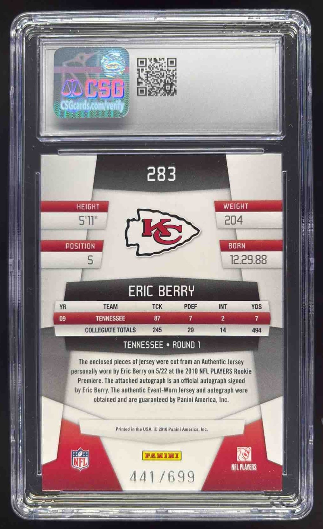 2010 Panini Certified #283 Eric Berry RC Auto /699 CSG 9