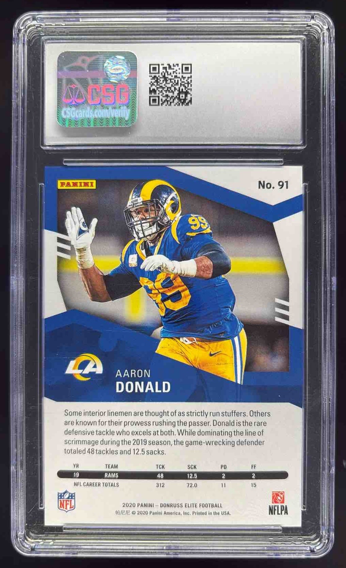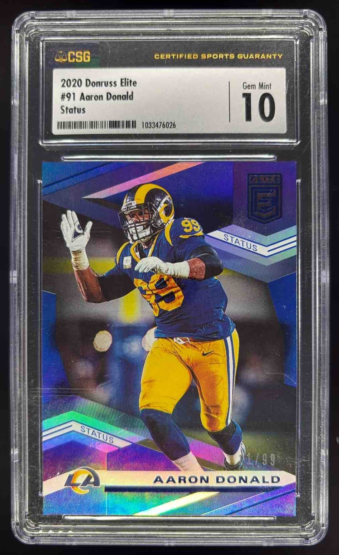 2020 Panini Donruss Elite Status #91 Aaron Donald /99 CSG 10