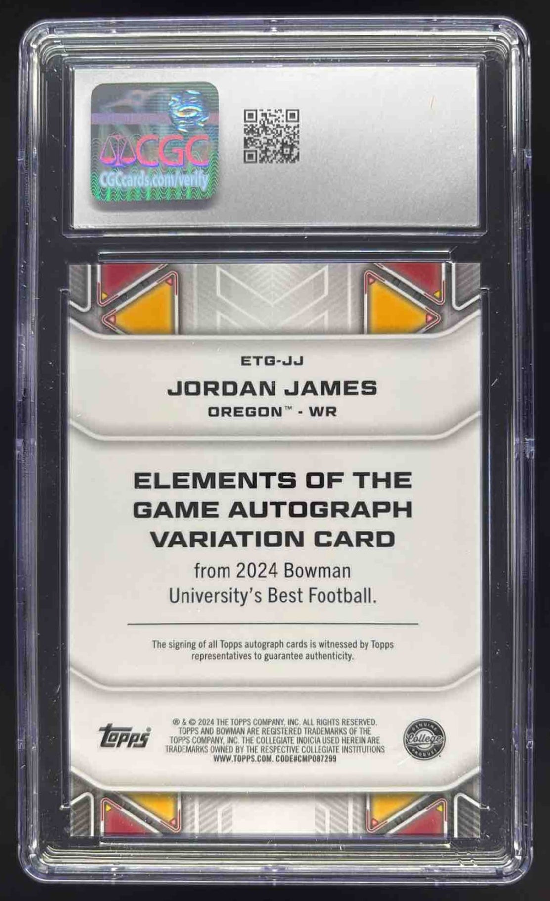 2024 Bowman Best University Elements Game White Jordan James Auto /5 CGC 10