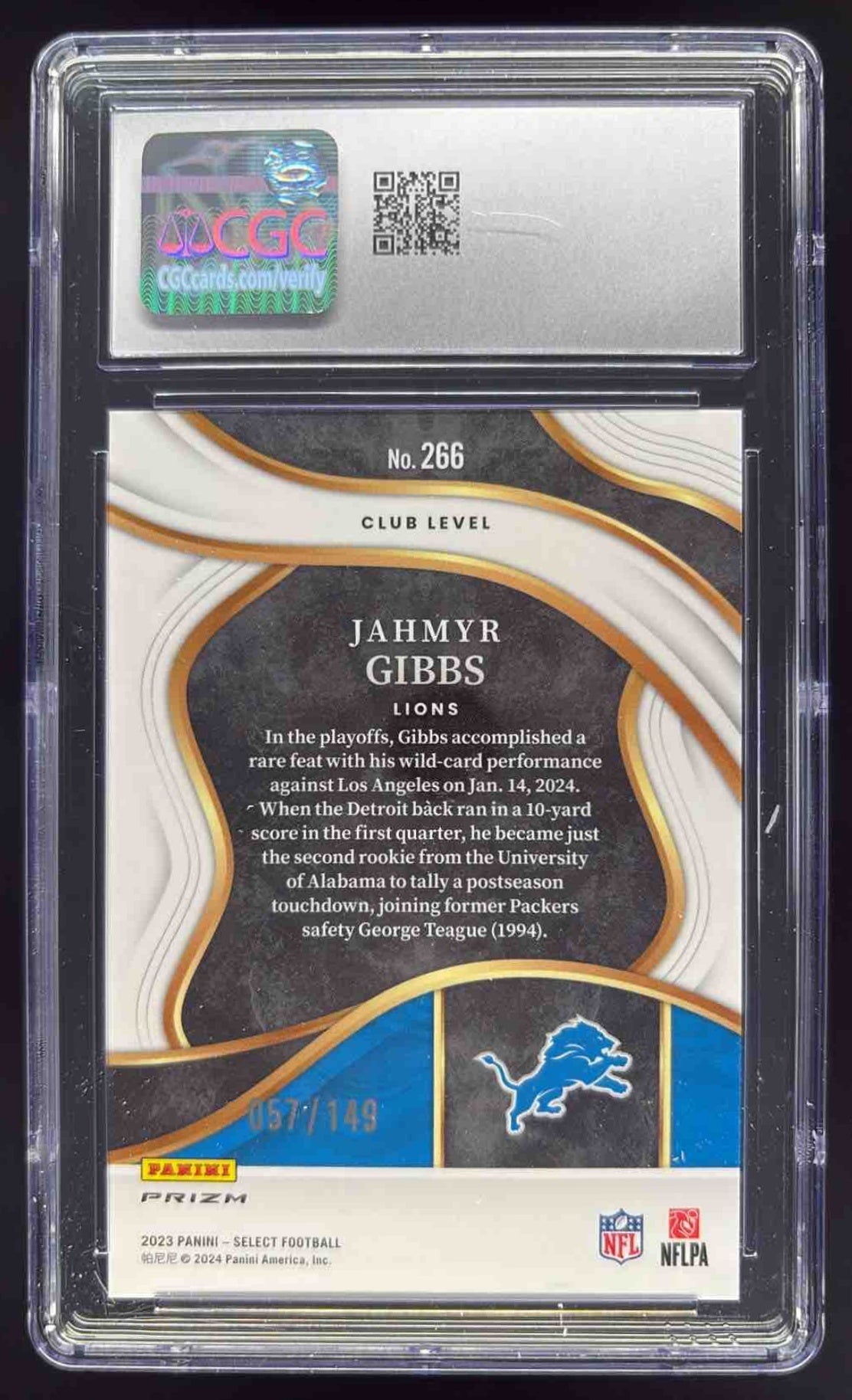 2023 Panini Select Tri Color Prizms #266 Jahmyr Gibbs Club RC /149 CGC 10