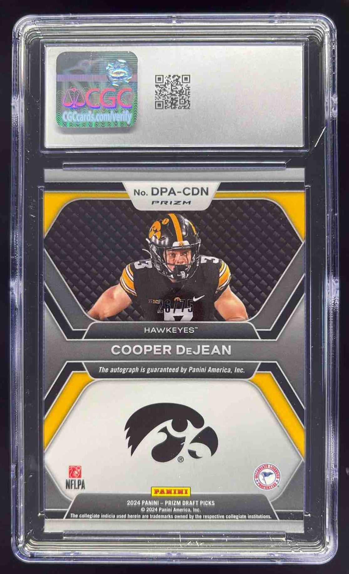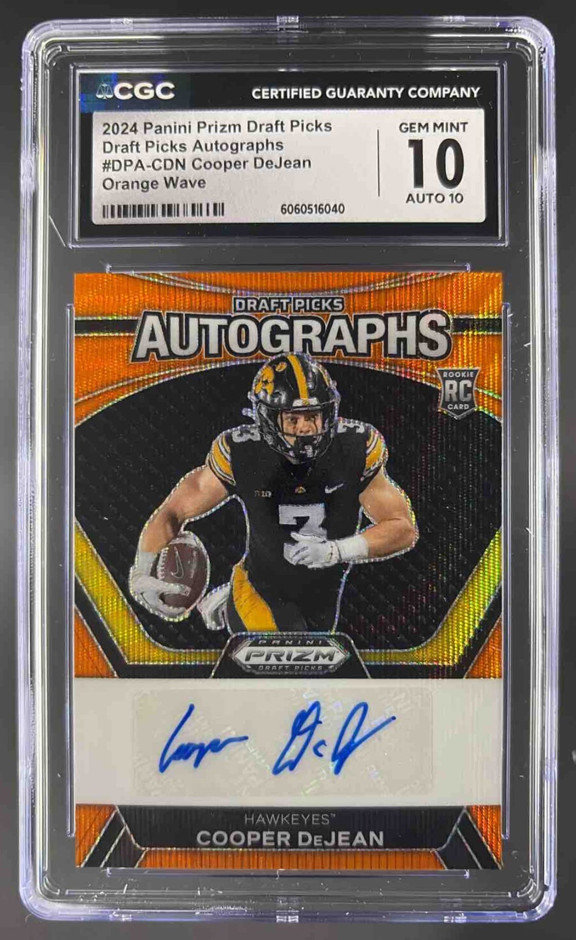 2024 Panini Prizm Collegiate Draft Orange Wave Cooper DeJean RC Auto /75 CGC 10