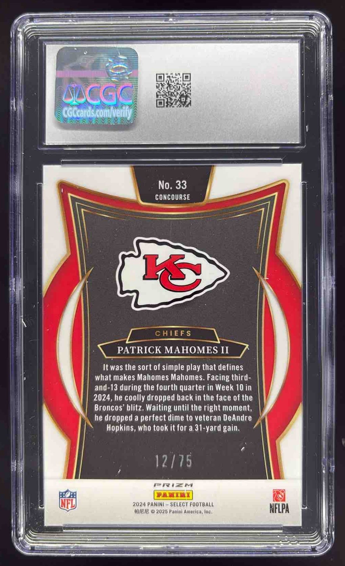2024 Panini Select Concourse Purple Prizm #33 Patrick Mahomes II /75 CGC 10