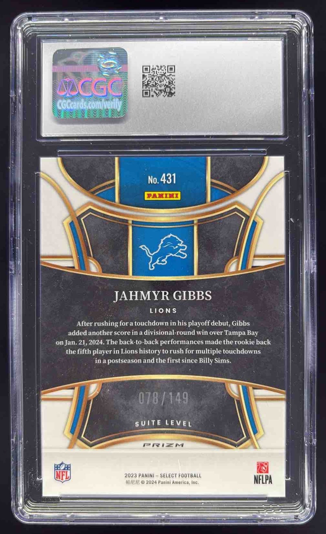 2023 Panini Select Tri Color Prizms #431 Jahmyr Gibbs RC Suite /149 CGC 10