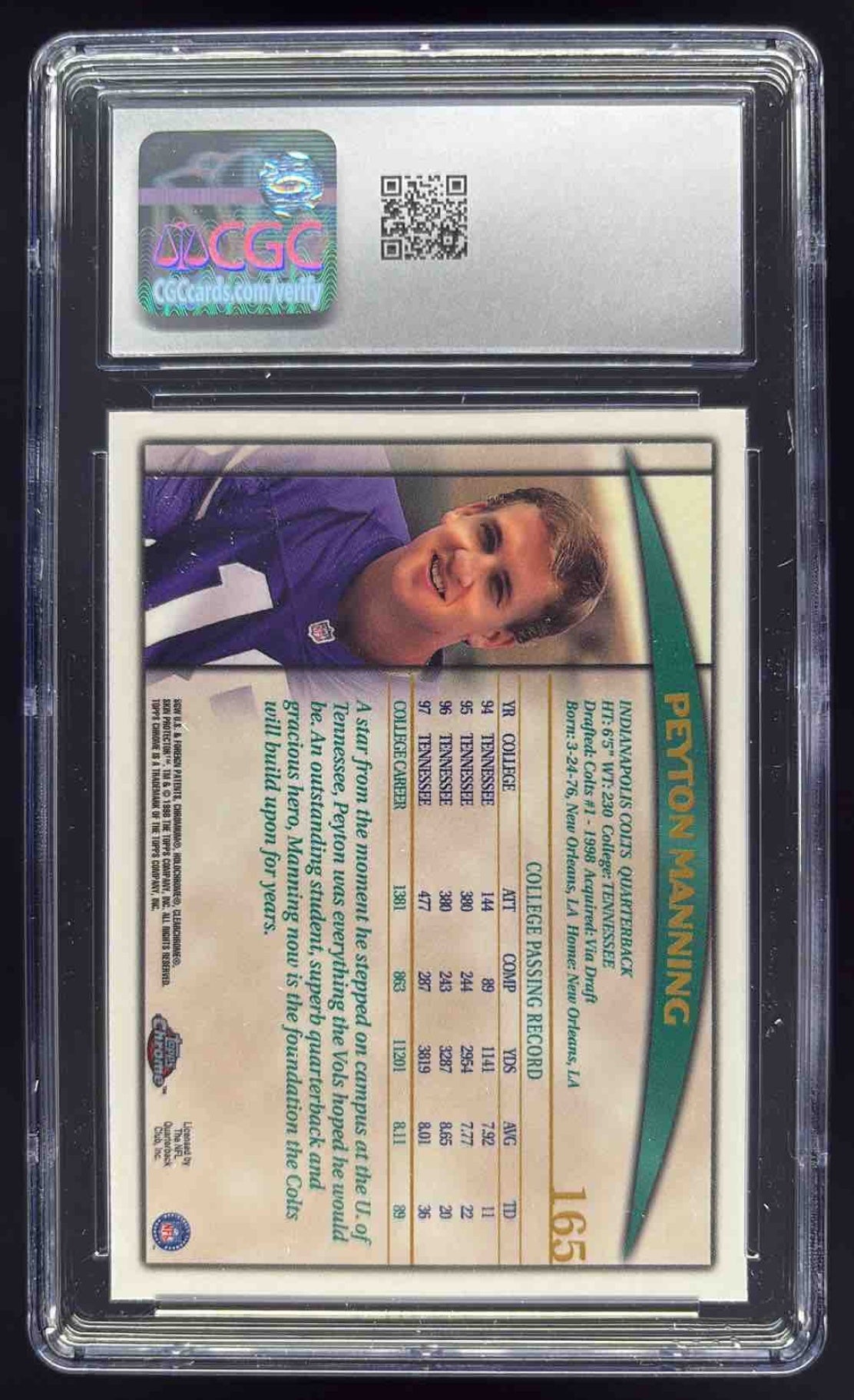 1998 Topps Chrome #165 Peyton Manning RC CGC 10