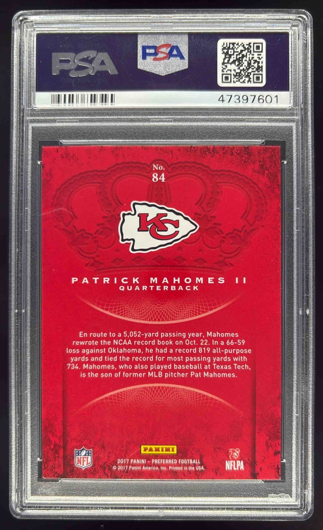2017 Panini Crown Royale #84 Patrick Mahomes II RC PSA 10