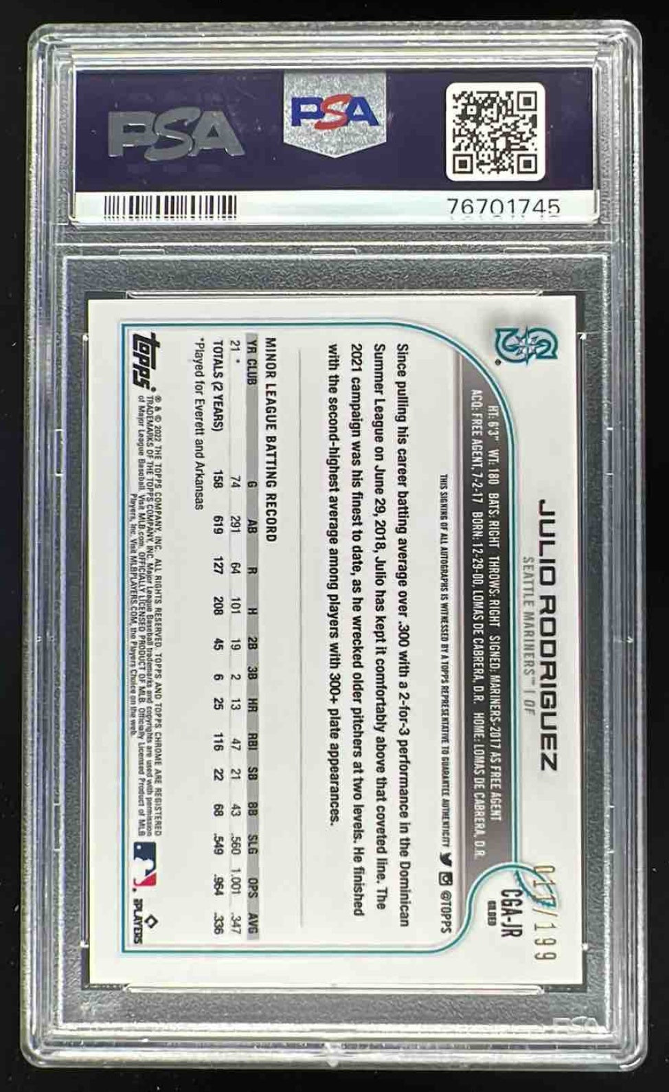 2022 Topps Gilded Collection Cast in Gold Julio Rodriguez RC Auto /199 PSA 10