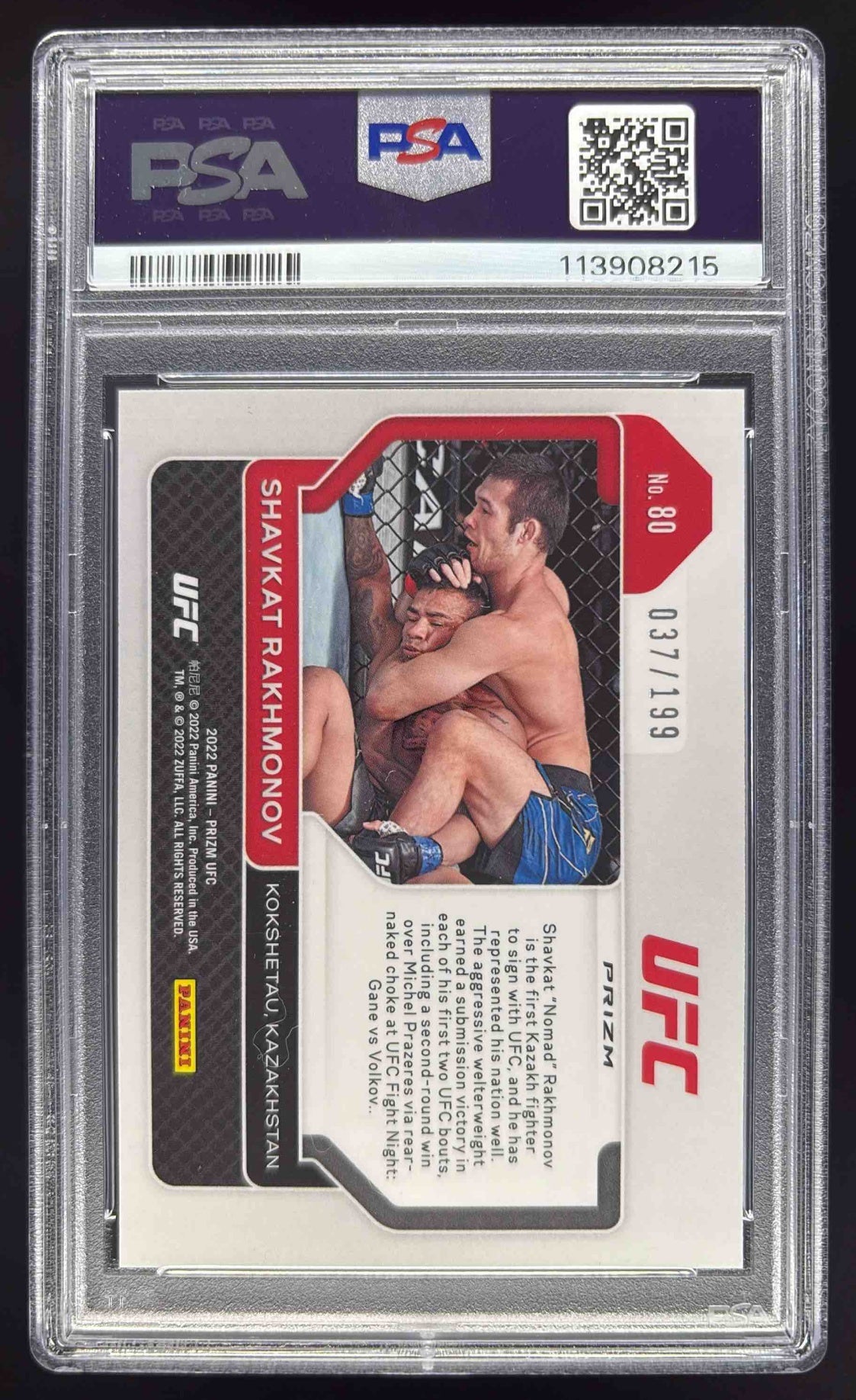 2022 Panini Prizm UFC Blue Prizms #80 Shavkat Rakhmonov RC /199 PSA 10