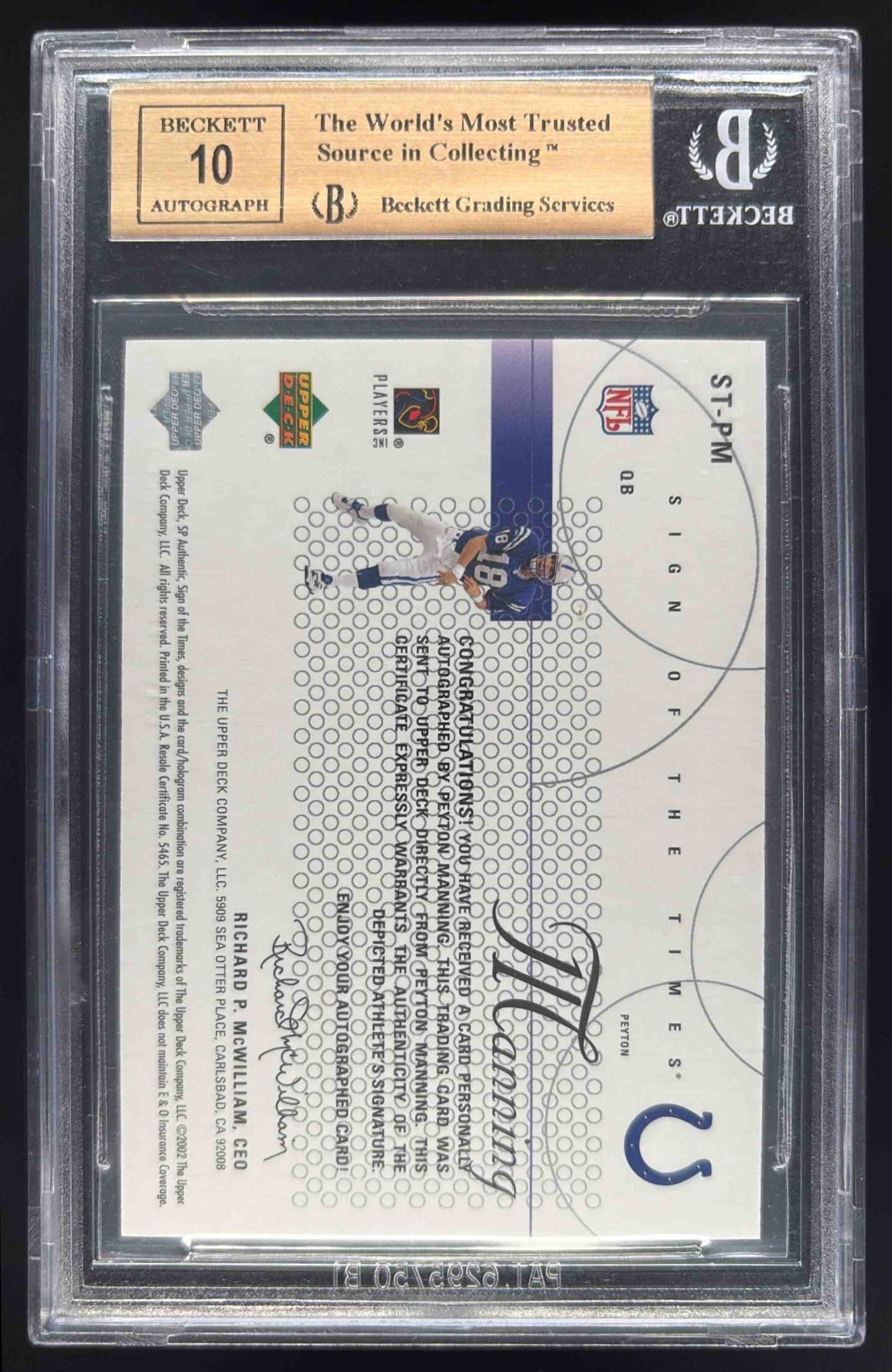 2002 SP Authentic Sign of the Times #ST-PM Peyton Manning Autograph Auto BGS 9.5