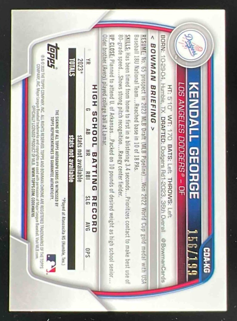 2023 Bowman Draft Chrome Aqua Lava Refractor #CDA-KG Kendall George RC Auto /199