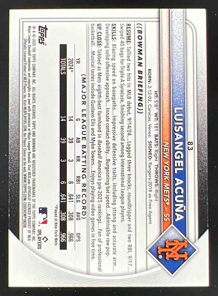 2025 Bowman Red Border #83 Luisangel Acuna RC /5