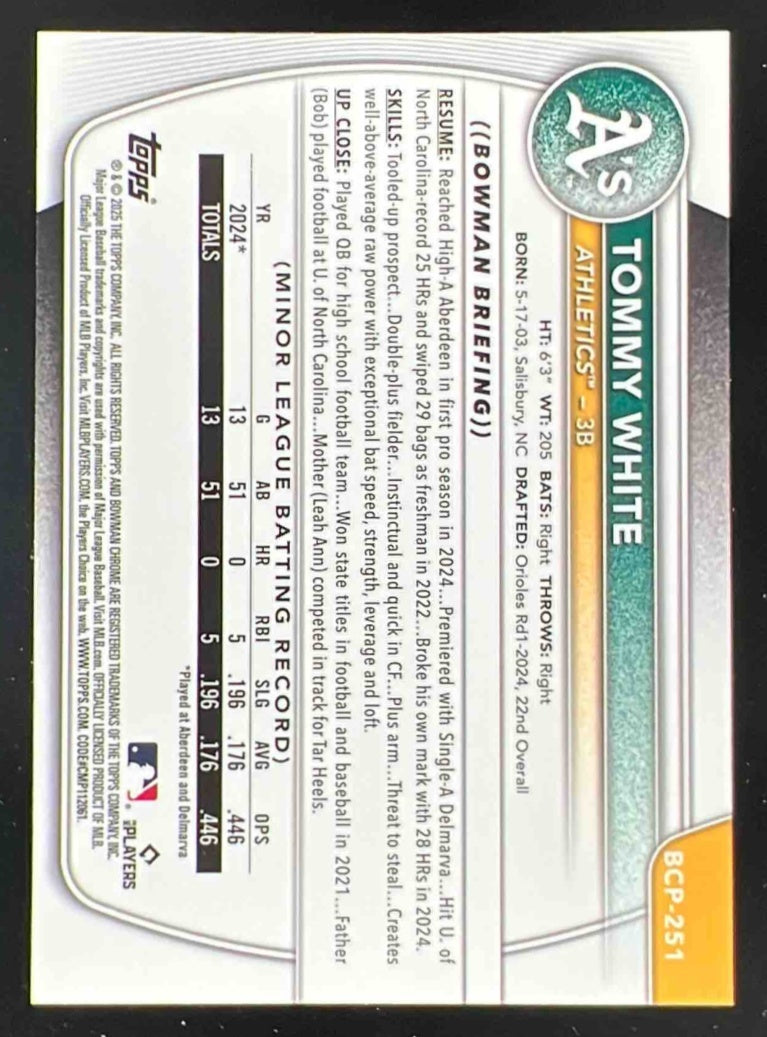 2025 Bowman Chrome Prospects Yellow Geometric Refractor #251 Tommy White RC /75