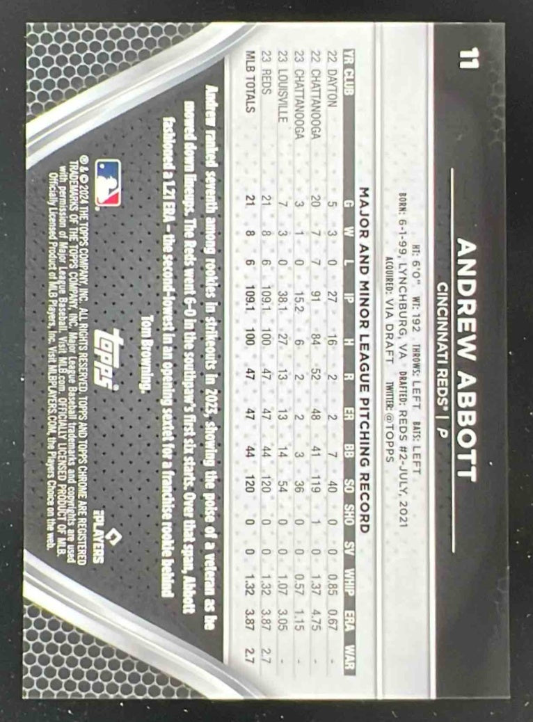 2024 Topps Chrome Black Rose Gold Wave Refractors #11 Andrew Abbott RC /15