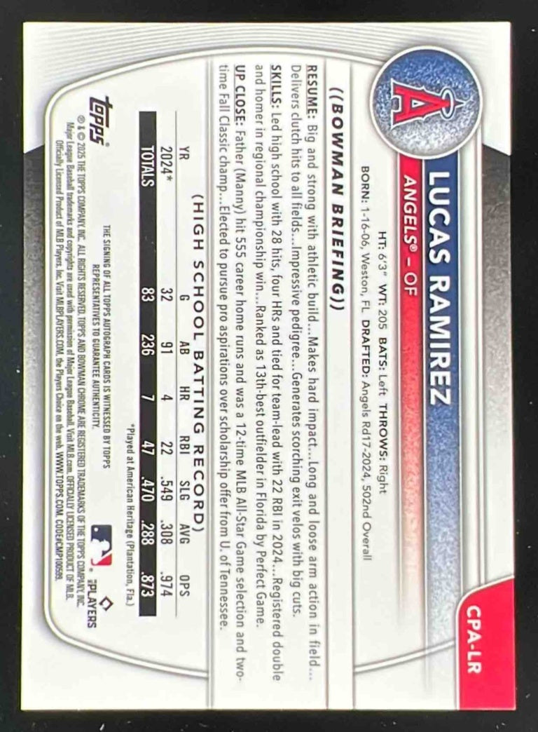 2025 Bowman Chrome Autographs Green Refractor #CPA-LR Lucas Ramirez RC Auto /99