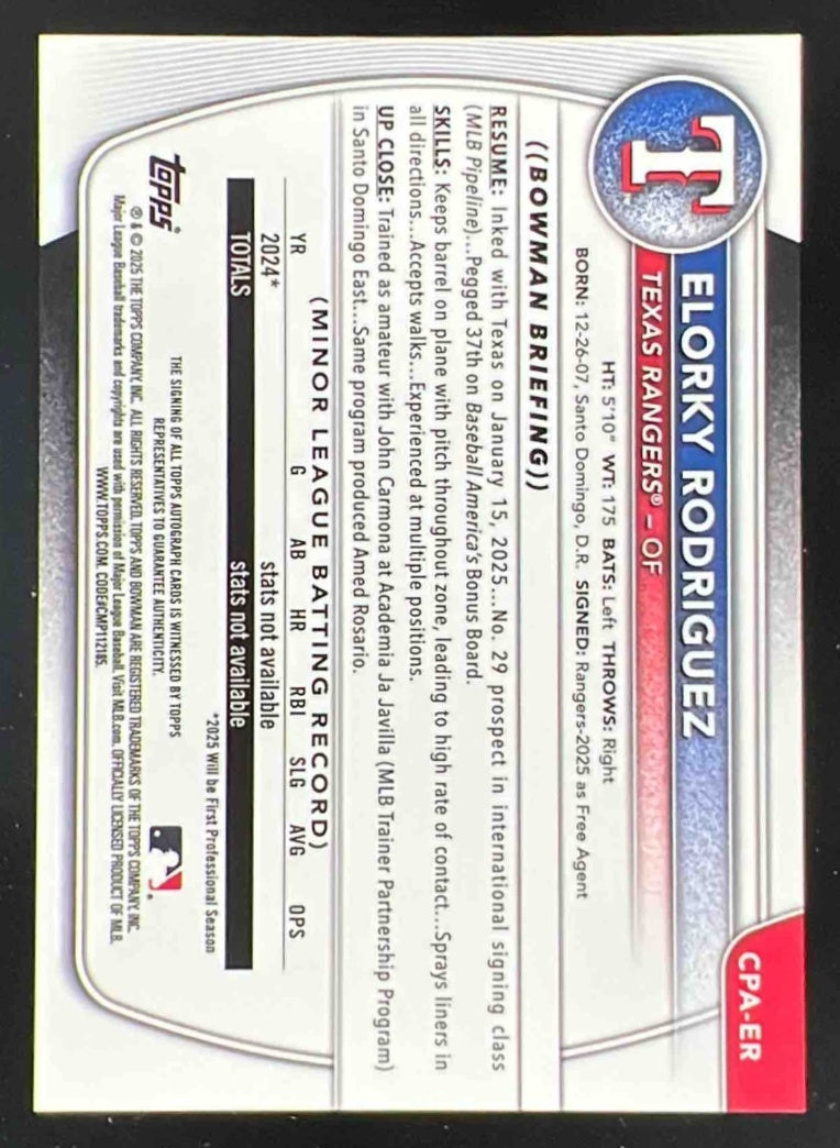 2025 Bowman Chrome Chrome Autograph #CPA-ER Elorky Rodriguez RC Auto