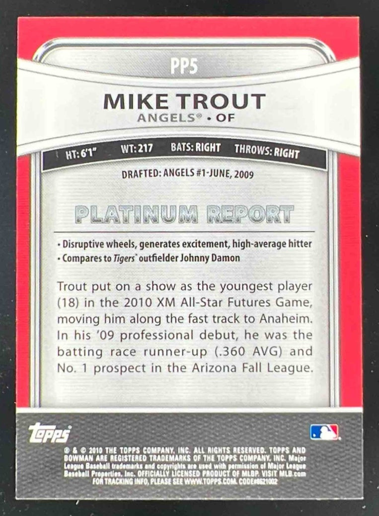 2010 Bowman Platinum Prospects #PP5 Mike Trout