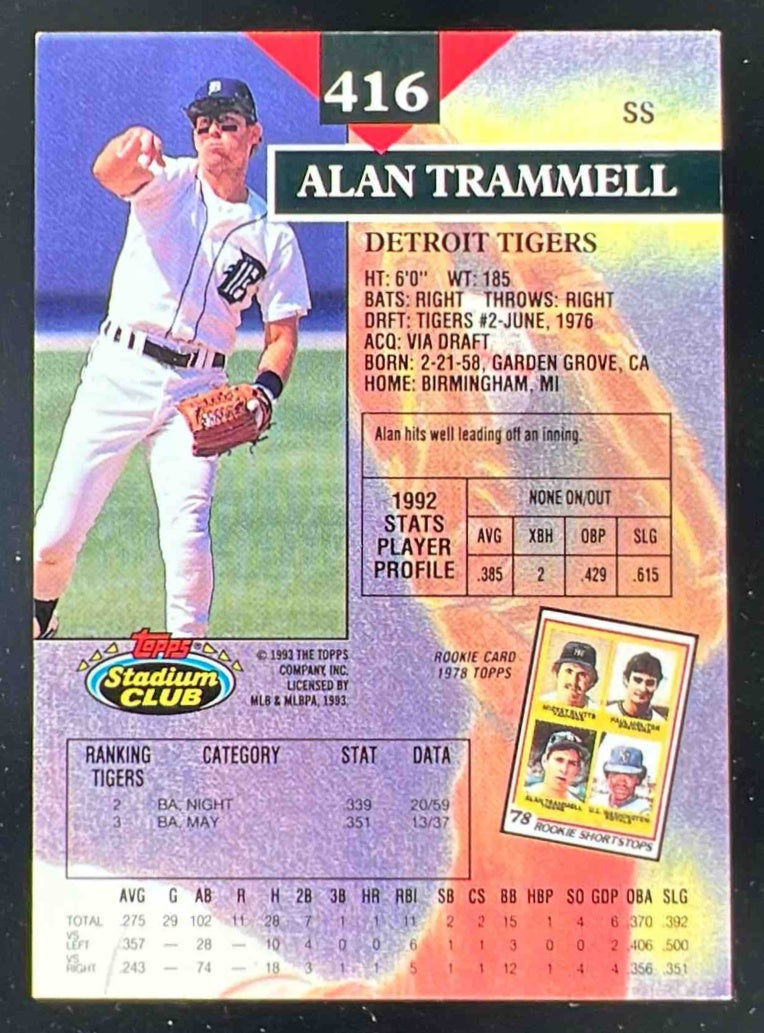 1993 Topps Stadium Club First Day Production #416 Alan Trammell