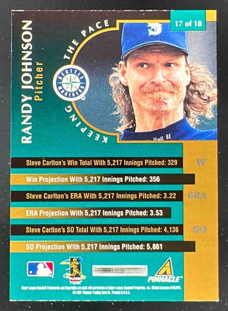 1997 Pinnacle New Keeping the Pace #17 Randy Johnson