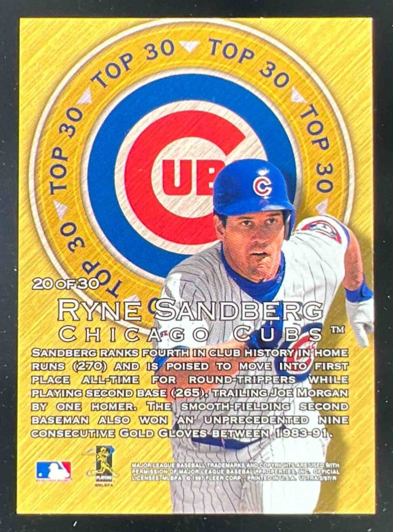 1997 Fleer Ultra Top 30 Gold Medallion #20 Ryne Sandberg