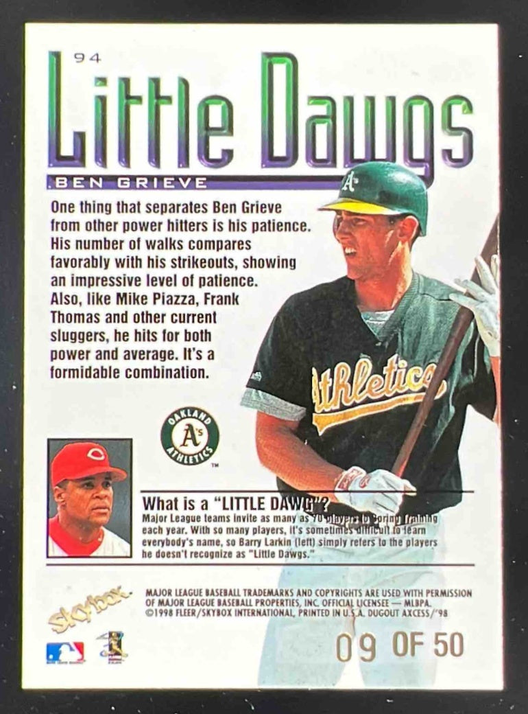 1998 Skybox Dugout Axcess Inside Axcess #94 Ben Grieve /50