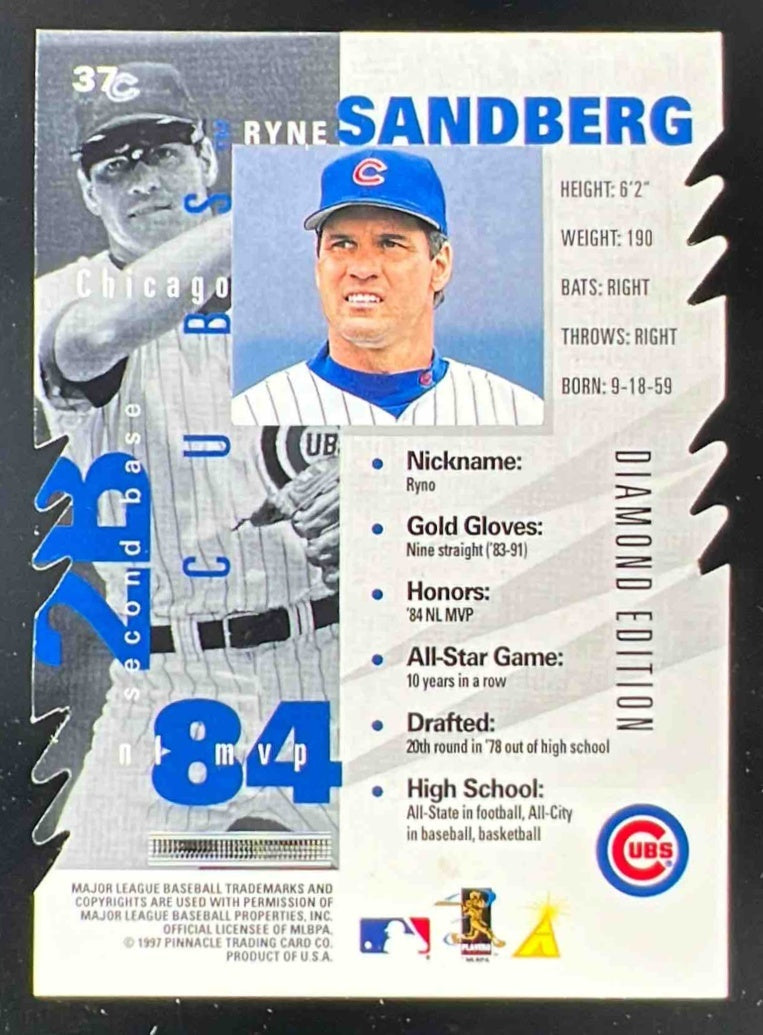 1997 Pinnacle Inside Diamond Edition #37 Ryne Sandberg