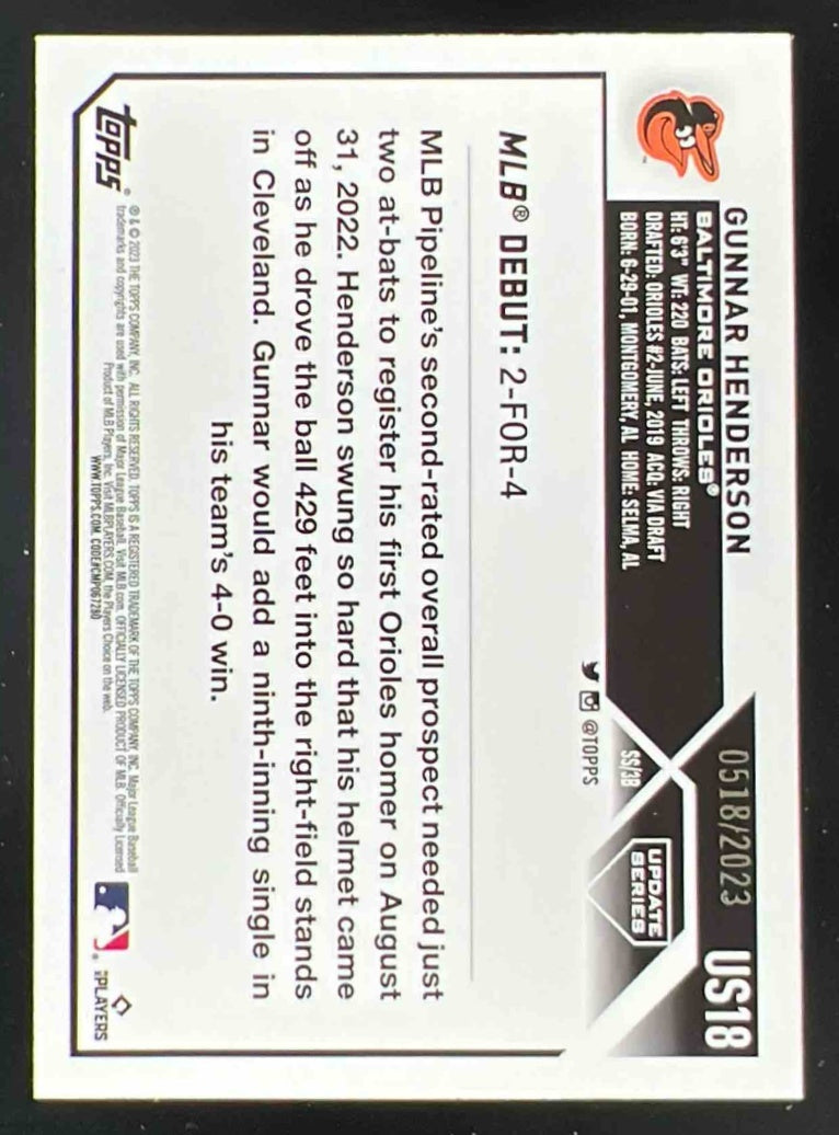 2023 Topps Update Gold #US18 Gunnar Henderson RC /2023