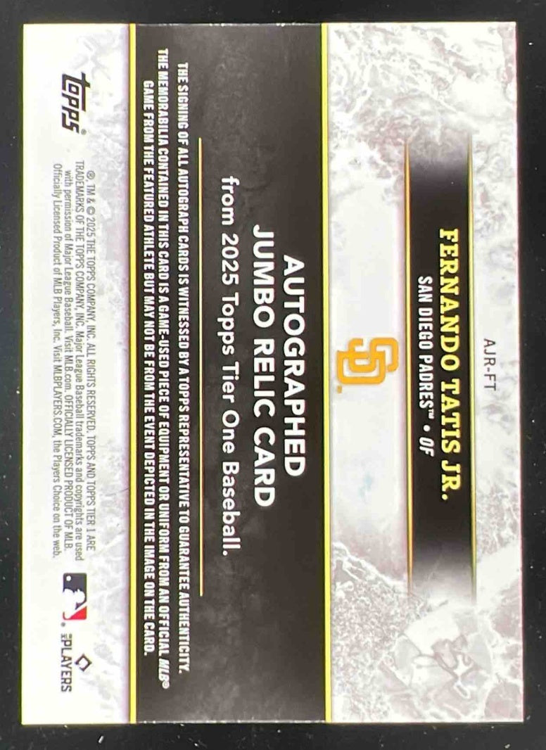 2025 Topps Tier One Tier One Jumbo Relics Blue #FT Fernando Tatis Jr. Auto /20