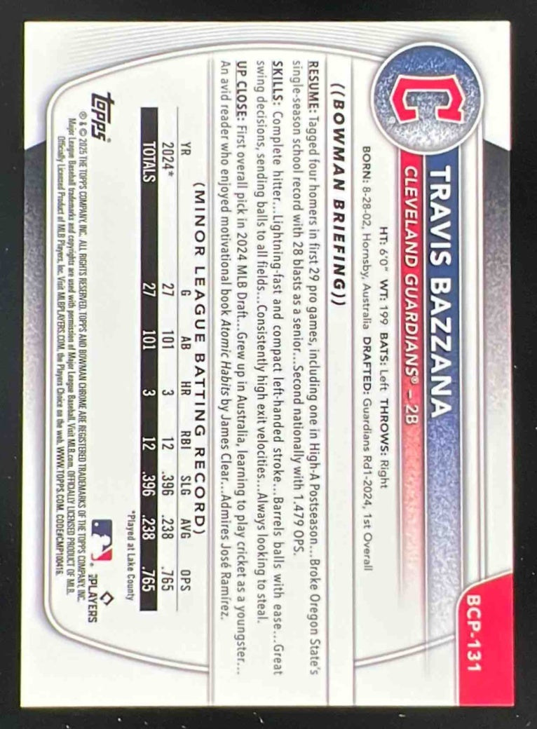 2025 Bowman Chrome Prospects Black Refractor #BCP-131 Travis Bazzana /10