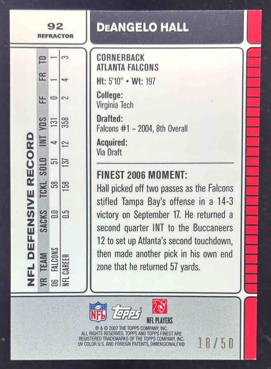 2007 Topps Finest Gold Refractors #92 DeAngelo Hall /50