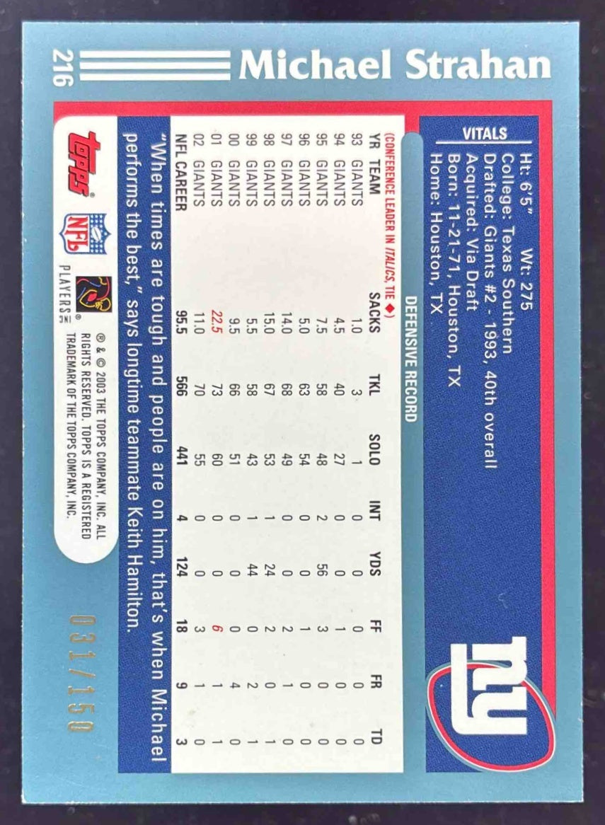 2003 Topps Black #216 Michael Strahan /150