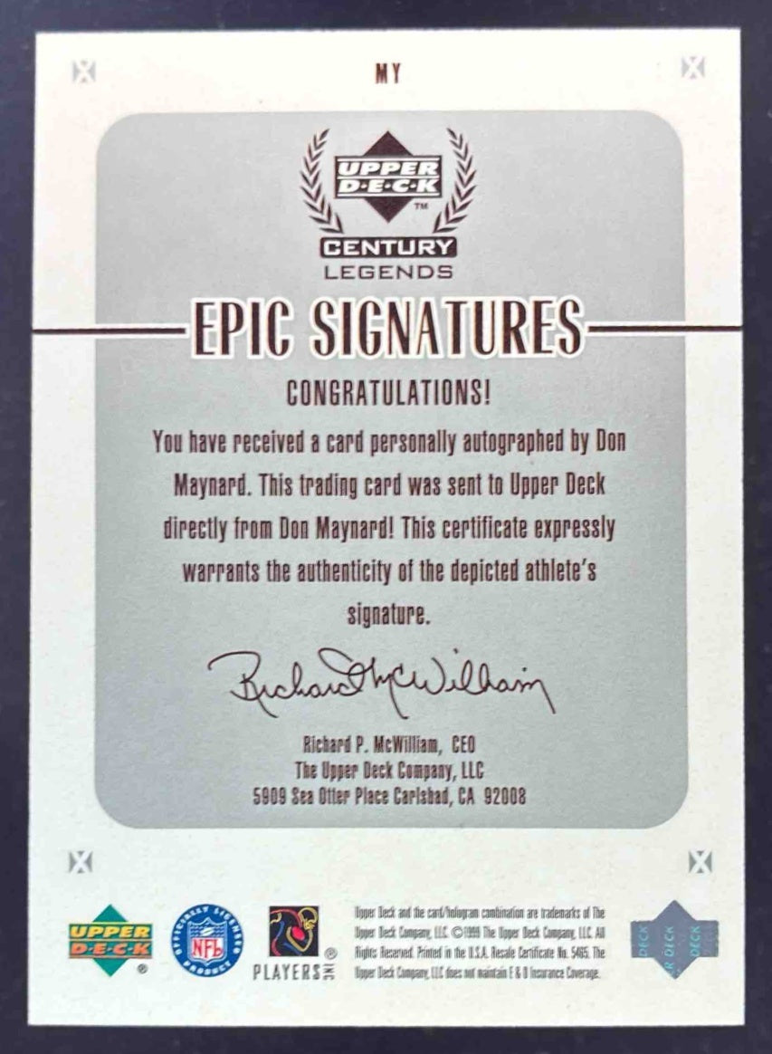 1999 Upper Deck Century Legends Epic Signatures #MY Don Maynard Auto