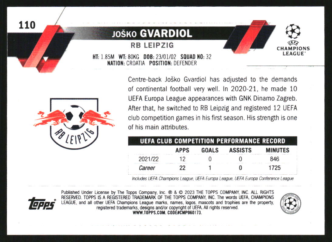 2022-23 Topps Chrome UEFA Club Competitions Gold Lava #110 Josko Gvardiol
