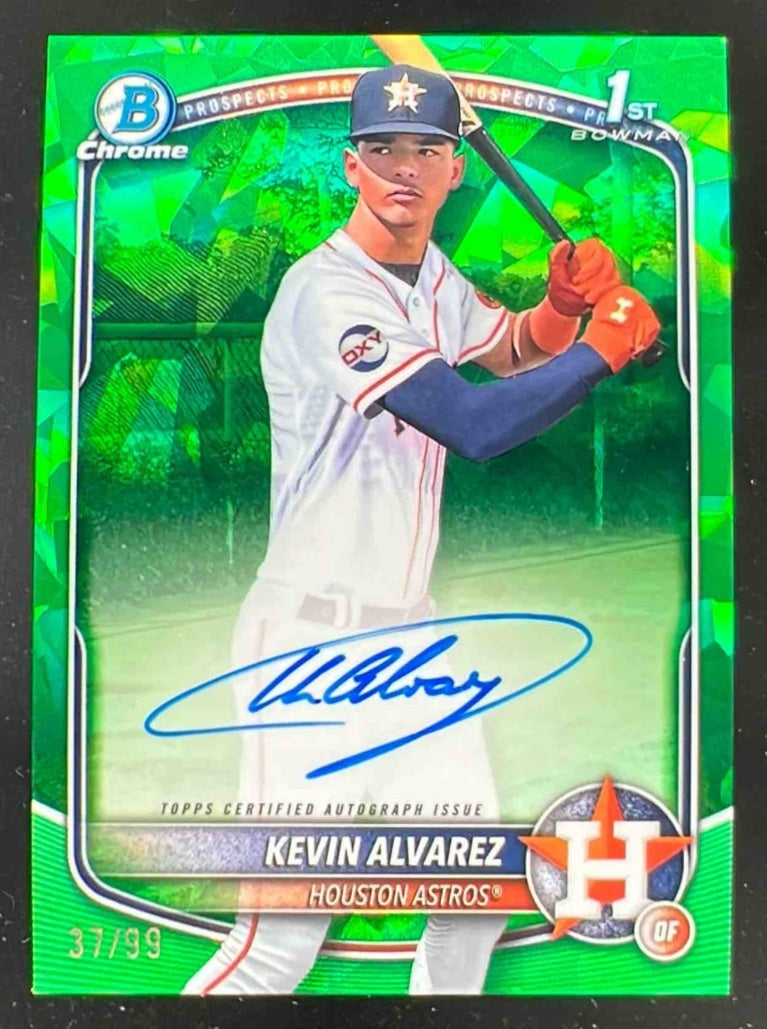 2025 Bowman Chrome Sapphire Autograph Green Refractor Kevin Alvarez RC Auto /99